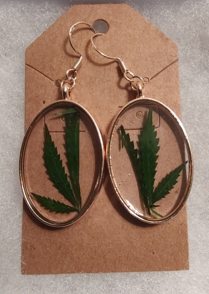 All leaves are grown and pressed in Northern Colorado. Inlayed in resin. All earrings are hypoallergenic. 24k plated hooks. Contains NO THC, product is not edible.