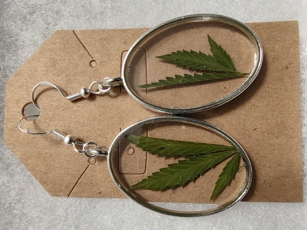 All leaves are grown and pressed in Northern Colorado. Inlayed in resin. All earrings are hypoallergenic.Sterling silver plated hooks. Contains NO THC, product is not edible.