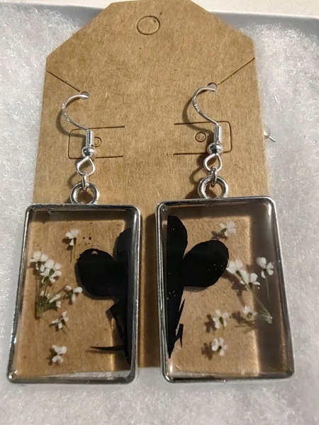 Black Flower Rectangle Earrings