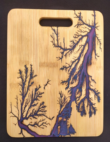 These beautiful bamboo cutting boards are 12"x9" .  Inlayed with a food grade safe resin. Hand wash recommended.